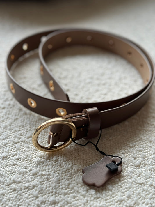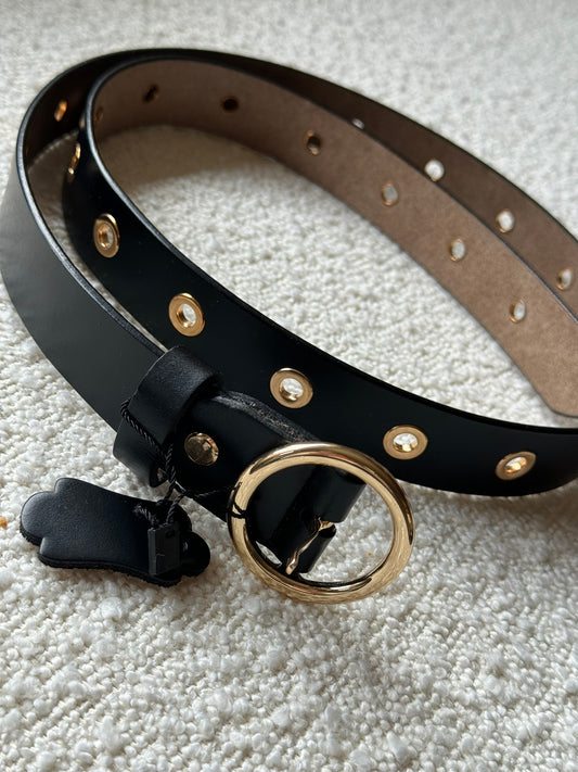 UitverkochtLeren riem met goudkleurige ringen - Zwart